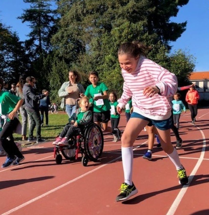Lors de l’année 2024-2025, 240 élèves de l’école Sainte-Bernadette et leurs parents ont pris part à une course solidaire au profit de l’association Irise, fondée par Delphine, maman d’Iris, pour venir en aide aux enfants en situation de polyhandicap.