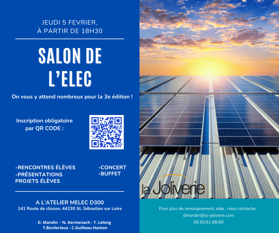 Le Salon de l’ELEC aura lieu le 5 février 2026 à partir de 18H30 dans l’atelier électrotechnique (Bâtiment D – Site Route de Clisson).