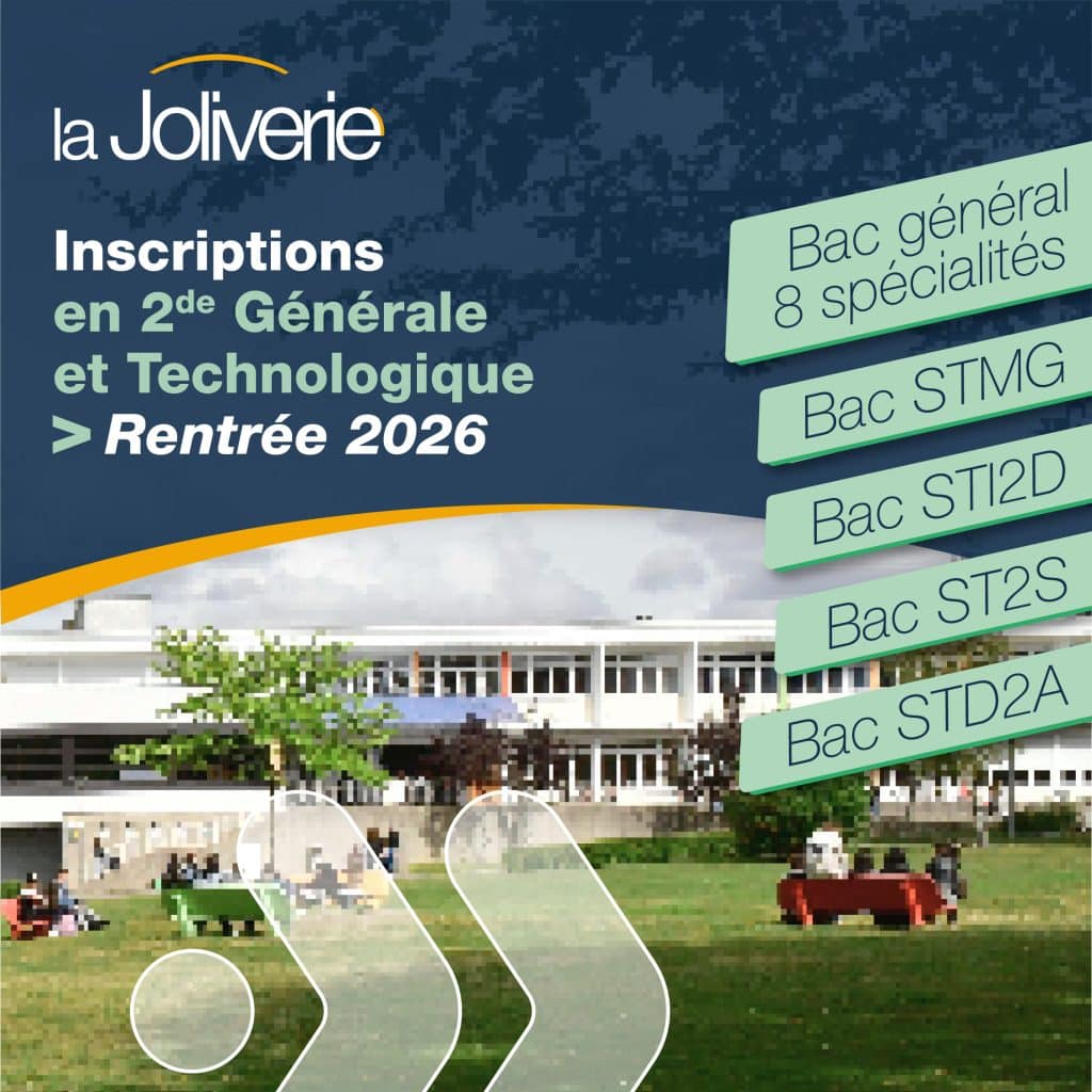 Le lycée la Joliverie propose des réunions d’informations, en distanciel, sur la 2de Générale Technologique (2de GT) et l’orientation post-3e le lundi 17 novembre 2025 à 18h00