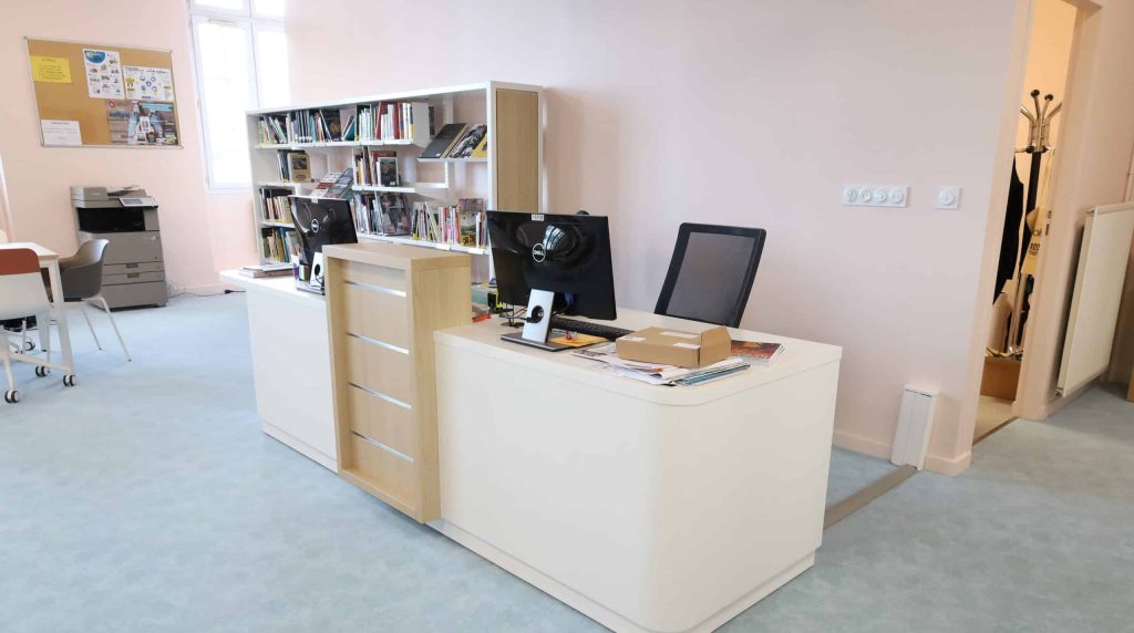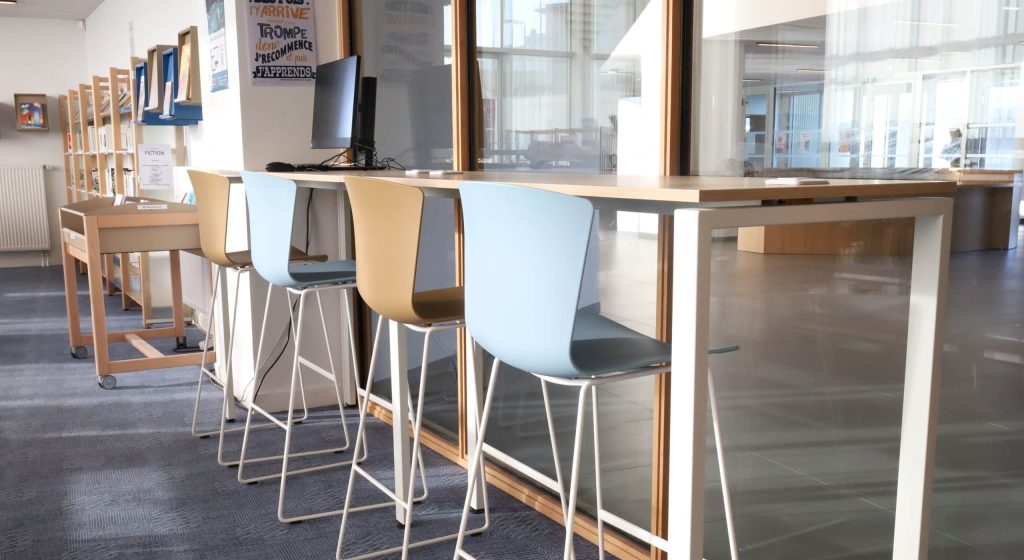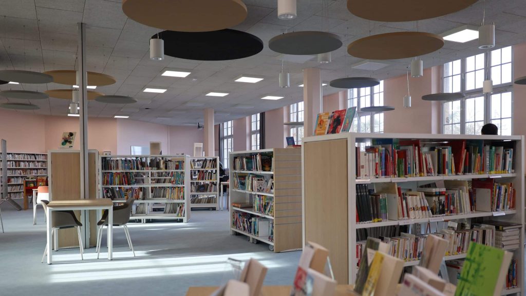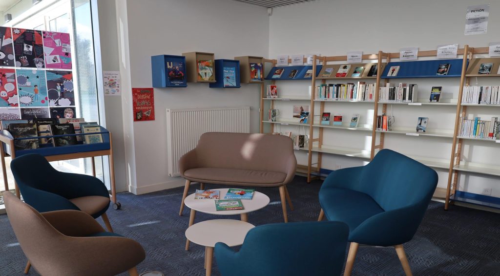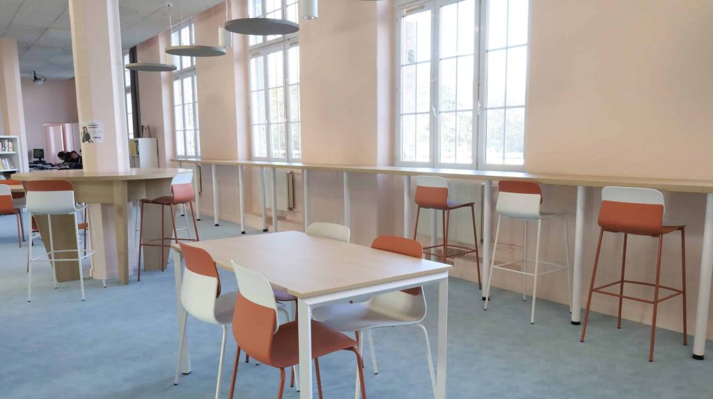 - Des espaces de travail : salles de lecture, zones de travail collaboratif, postes informatiques.